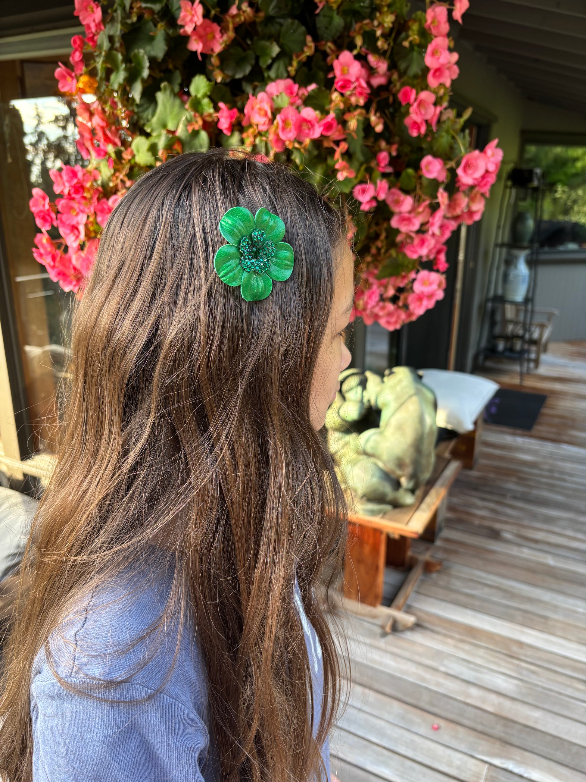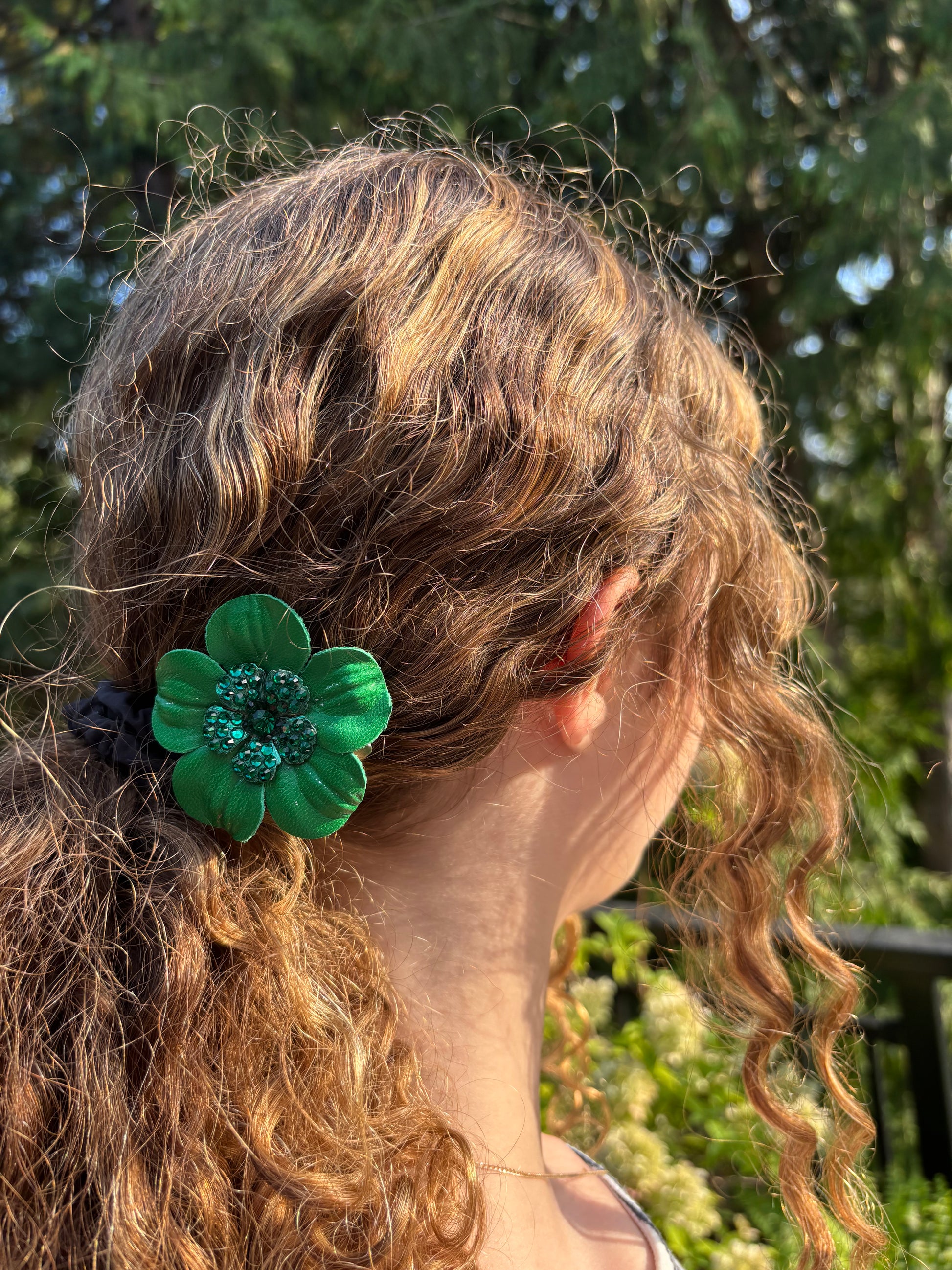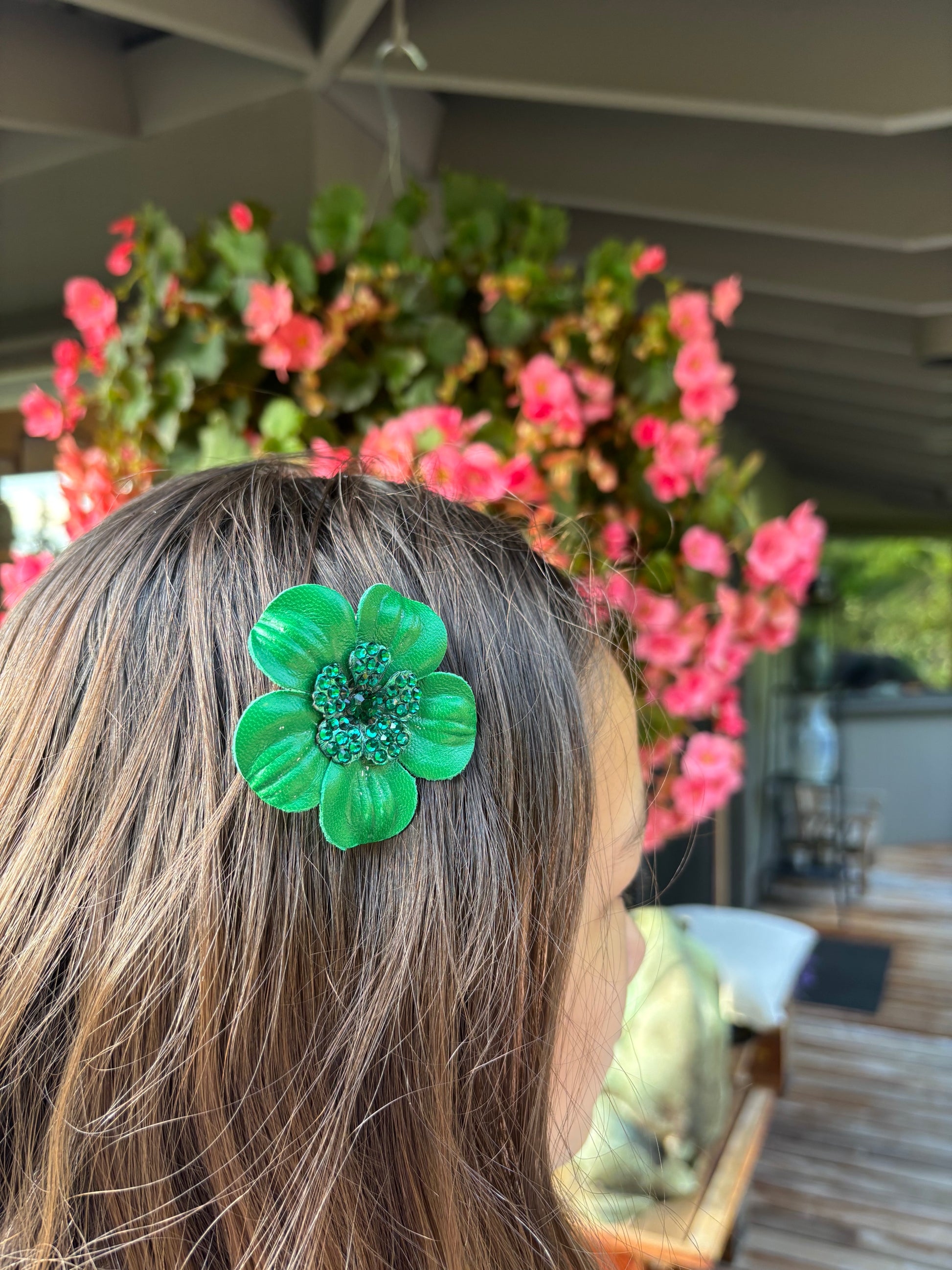 Karin's Garden The Coco: 2.25"Petite Leather and Crystal Flower Pin & Clip. Made In The USA. Leather and crystal flower center. Please message with any questions.