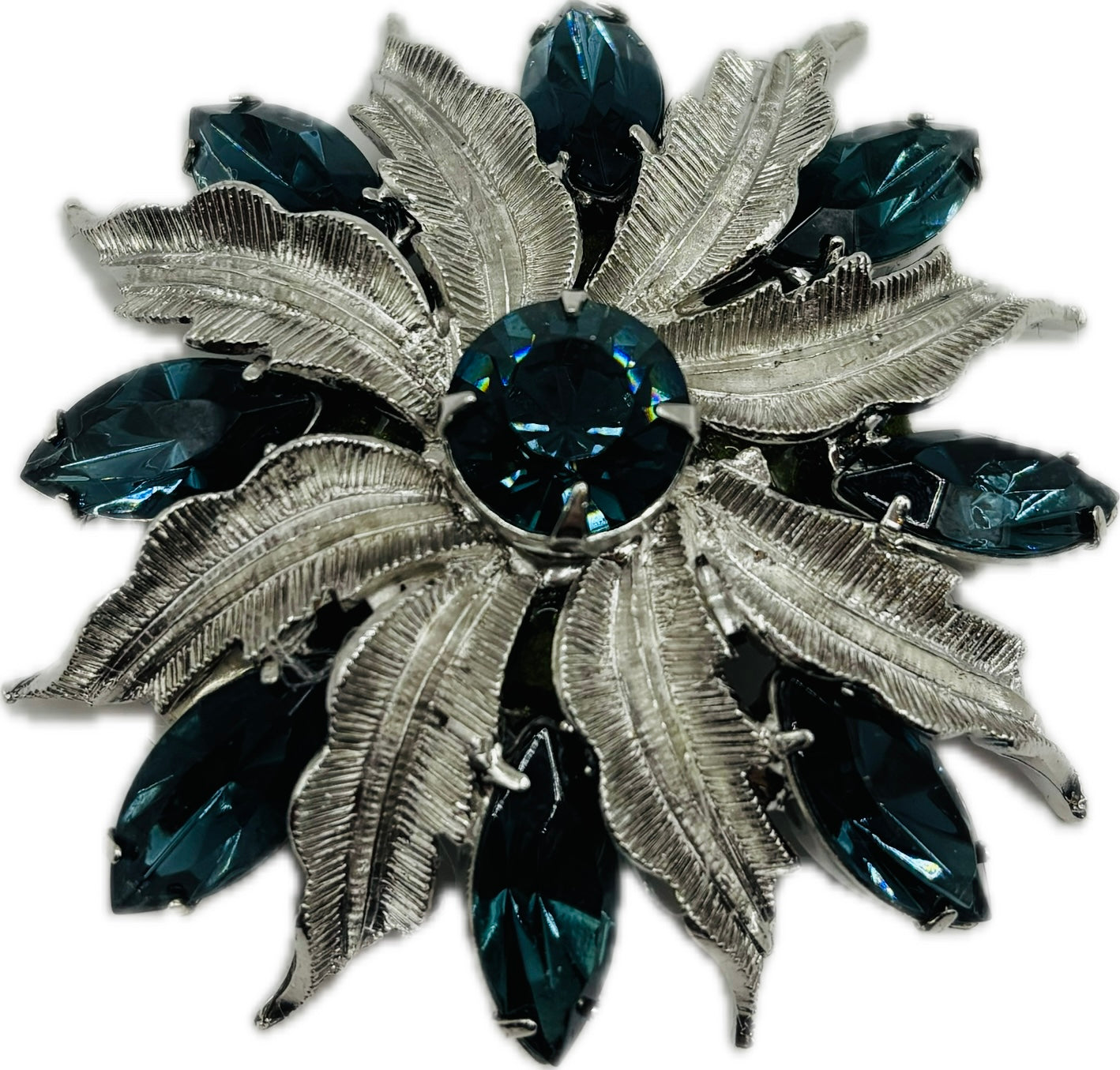 “Ingrid” Brooch in Blue. 2" - Made in the USA. Pin to your lapel, dress, scarf, hat and more. Wear one or multiple.