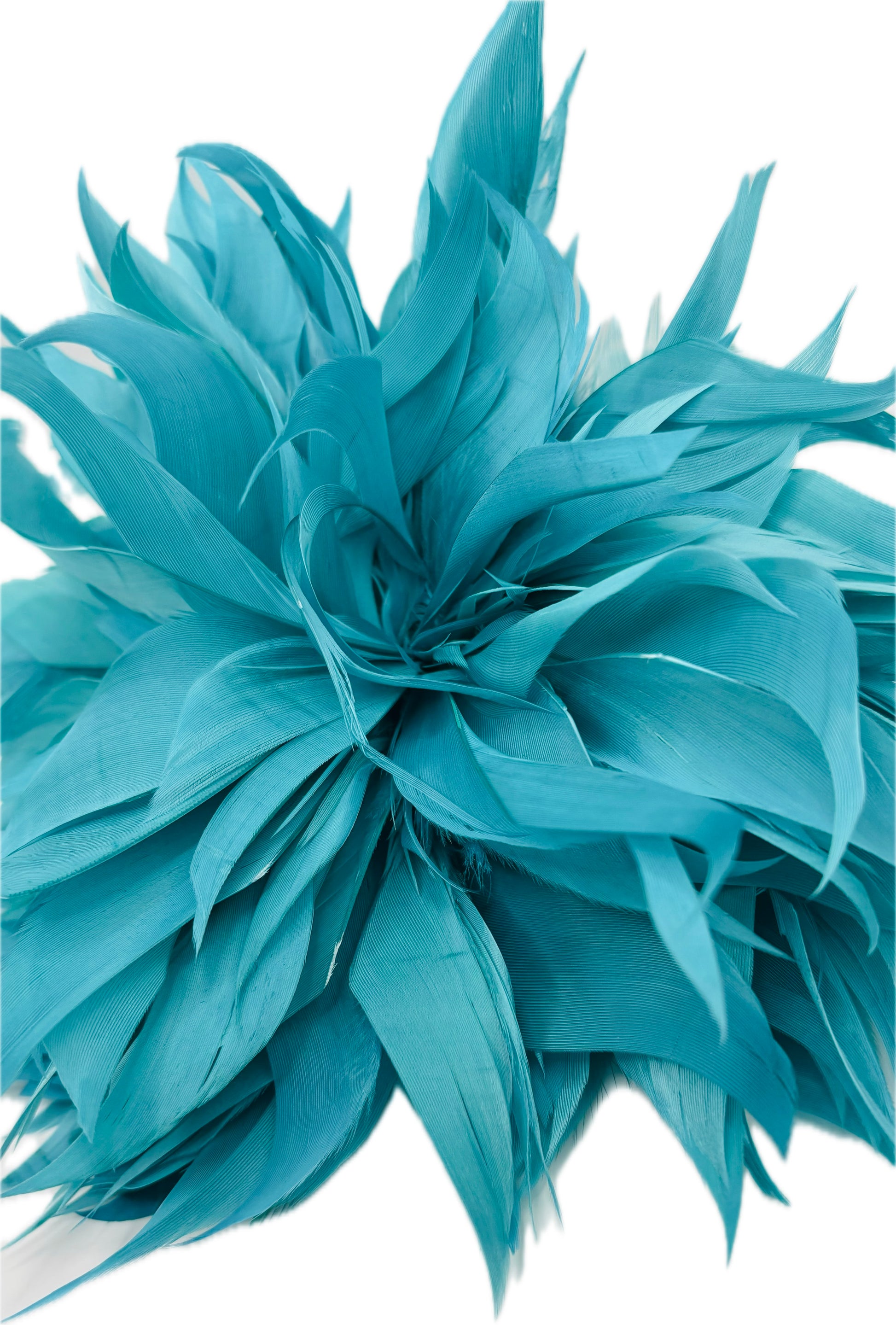 "Josephine" Feather Brooch & Clip in Aqua. Wear on your lapel, dress, in your hair, on purse, hat and more. 5"