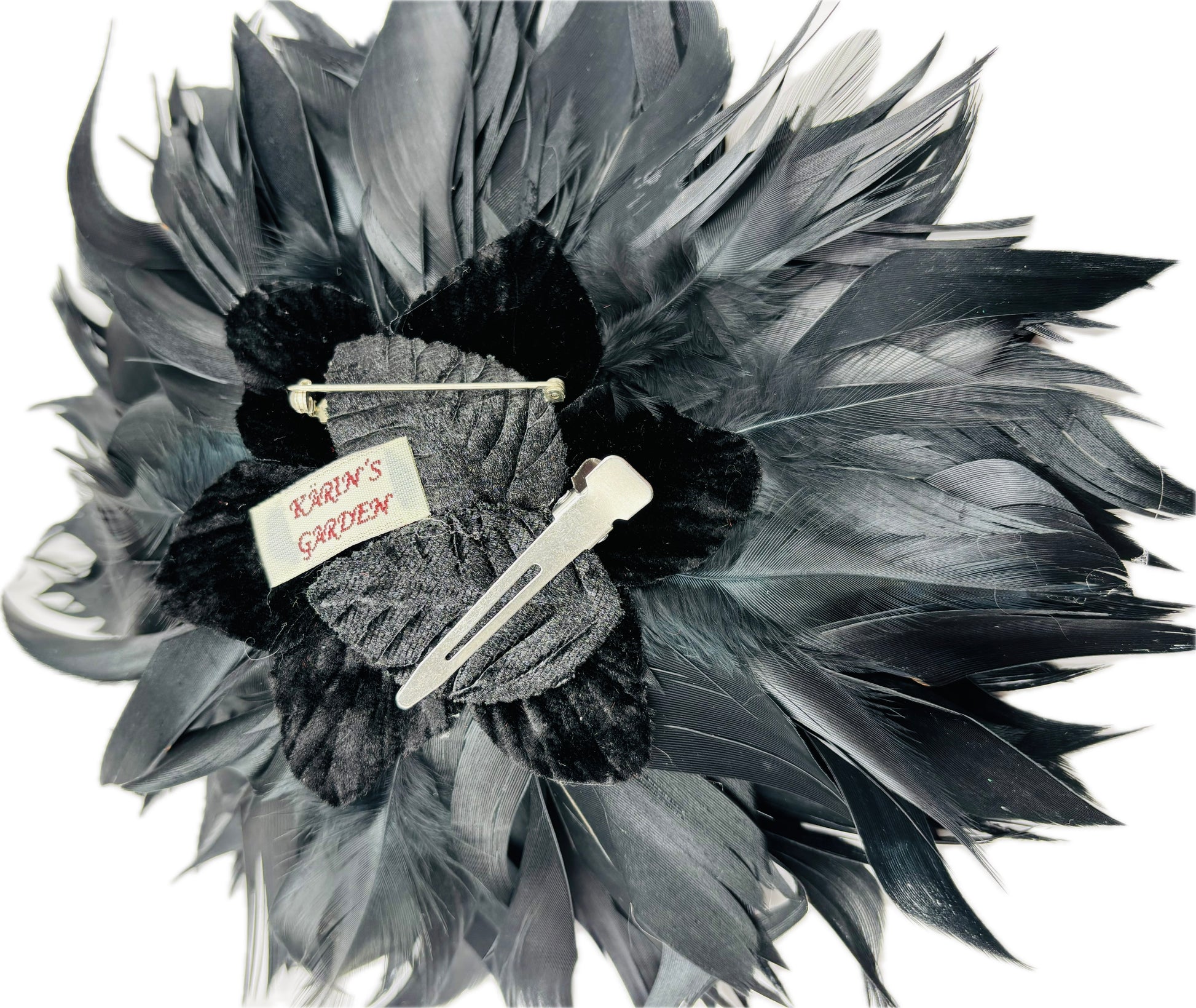 "Josephine" Feather Brooch & Clip in Black. Wear on your lapel, dress, in your hair, on purse, hat and more.