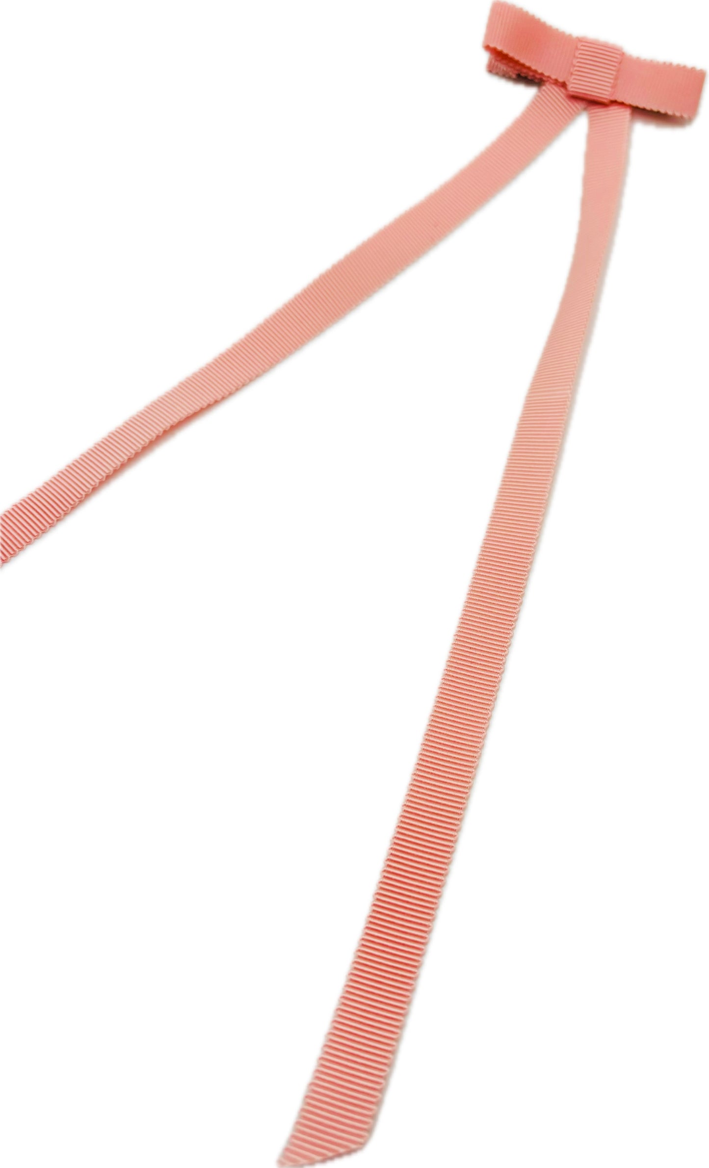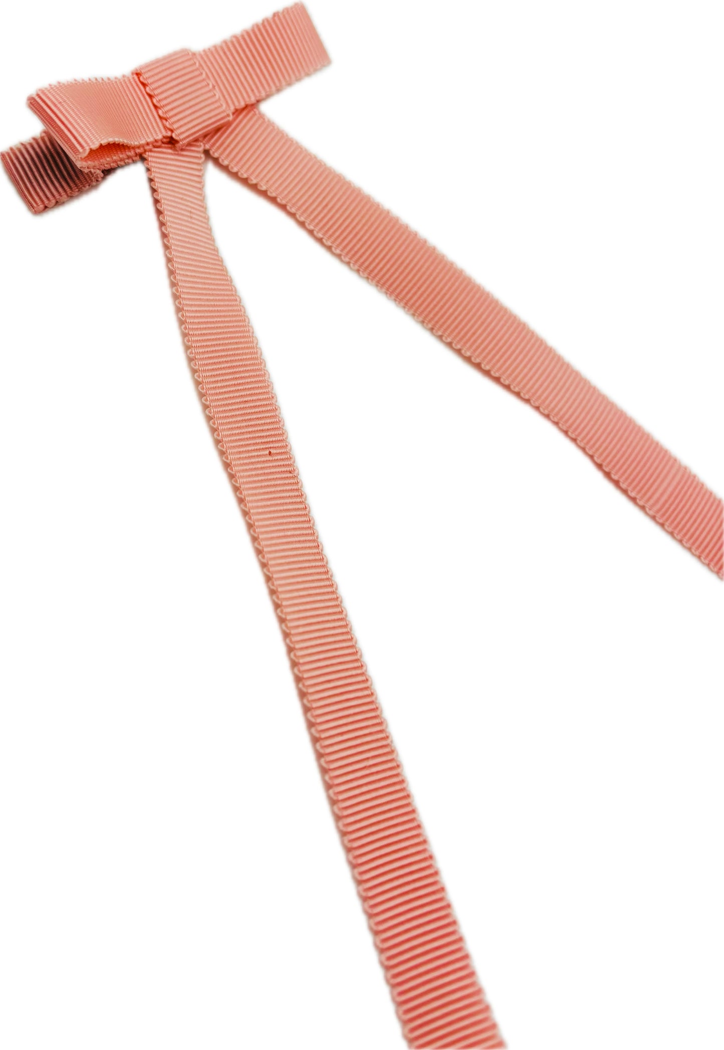 Karin’s Garden Ultra Mini Pink 2” Coquette Grosgrain Bow Pinch Clip. Ribbon tails measure 9" long. Bow Clip is 2" in length and the ribbon width is 3/8". Clip into hair, into bun, onto handbag and more. Versatile and classic.