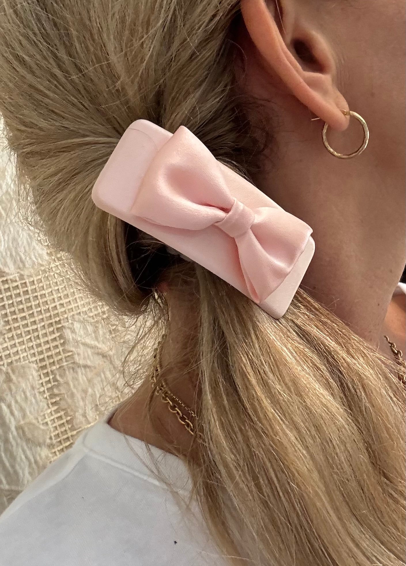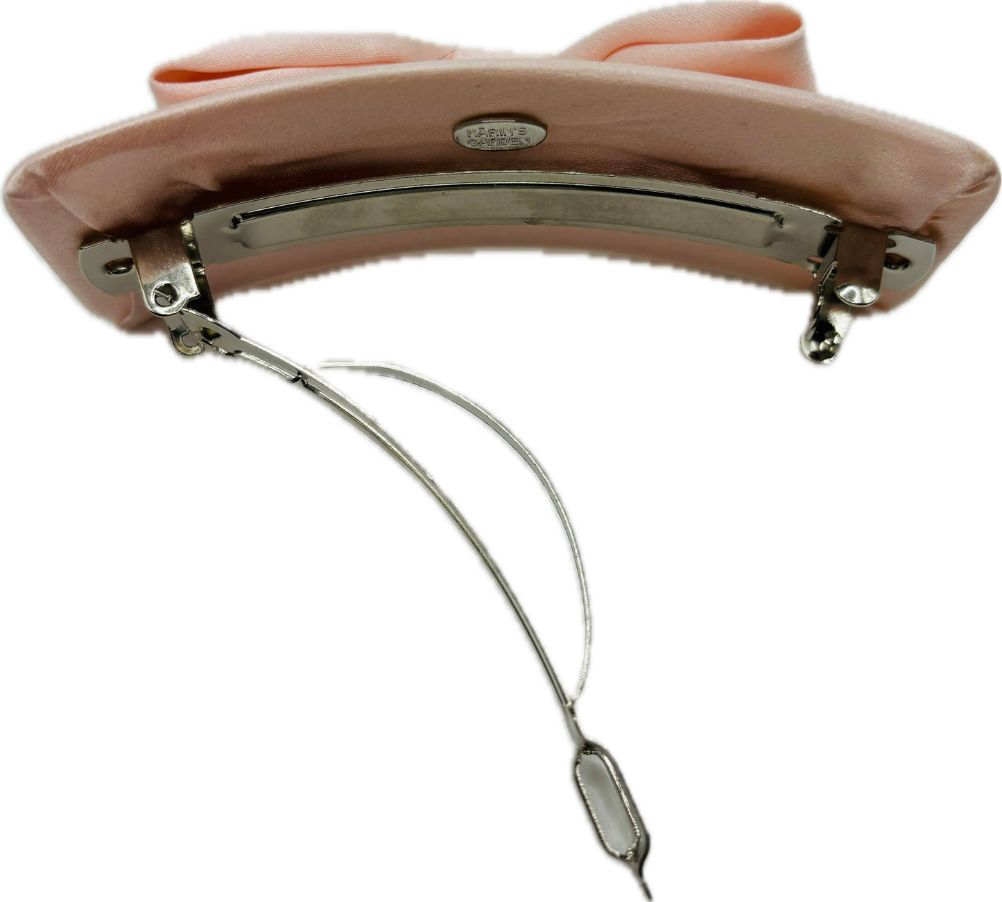 Karin's Garden 4" Pink Silk Bella French Barrette with Bow. Handmade in the USA