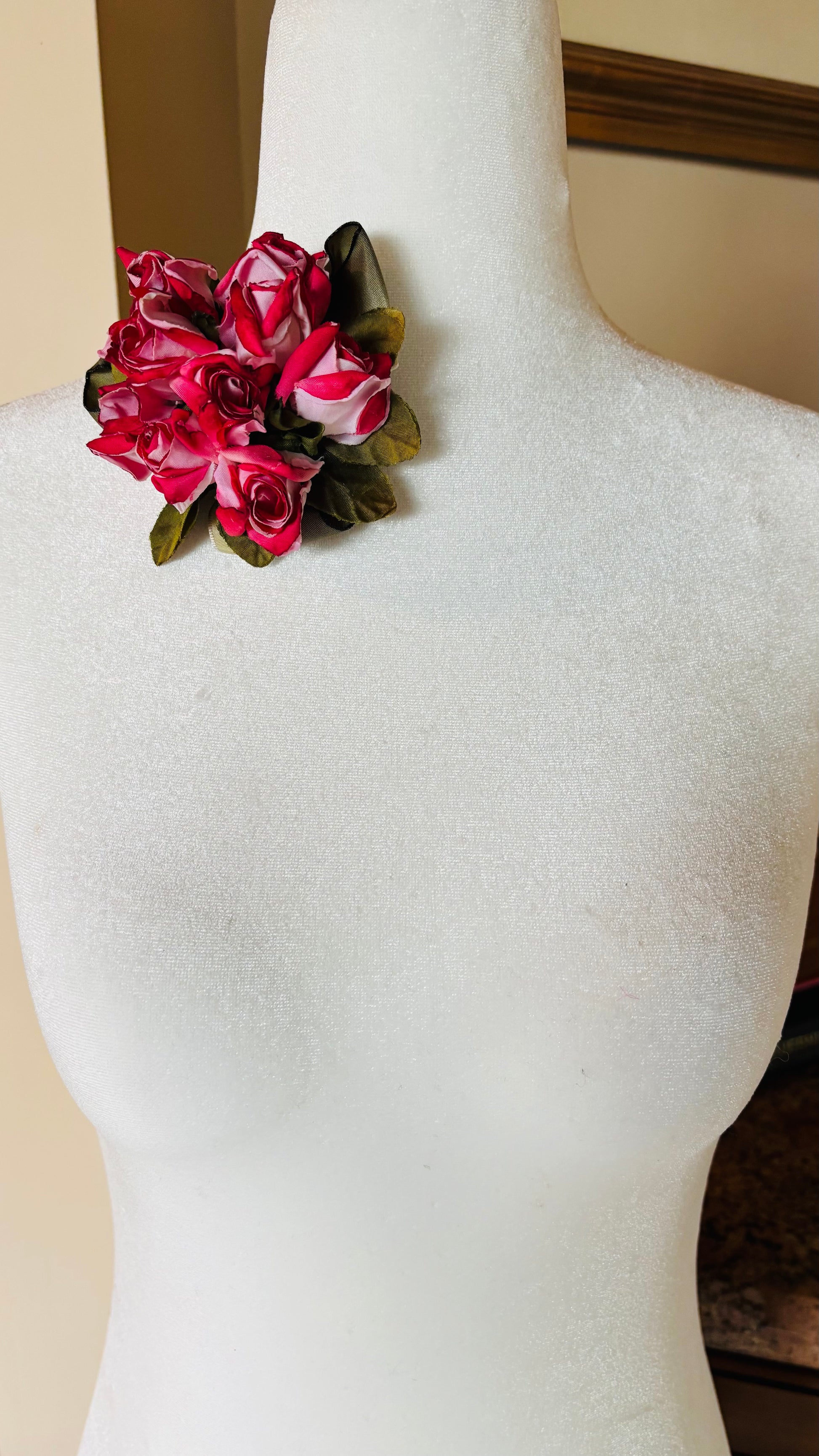 “Mary Ellen” 4” Vintage Rosebuds Brooch & Clip. Life Like Rosebuds.