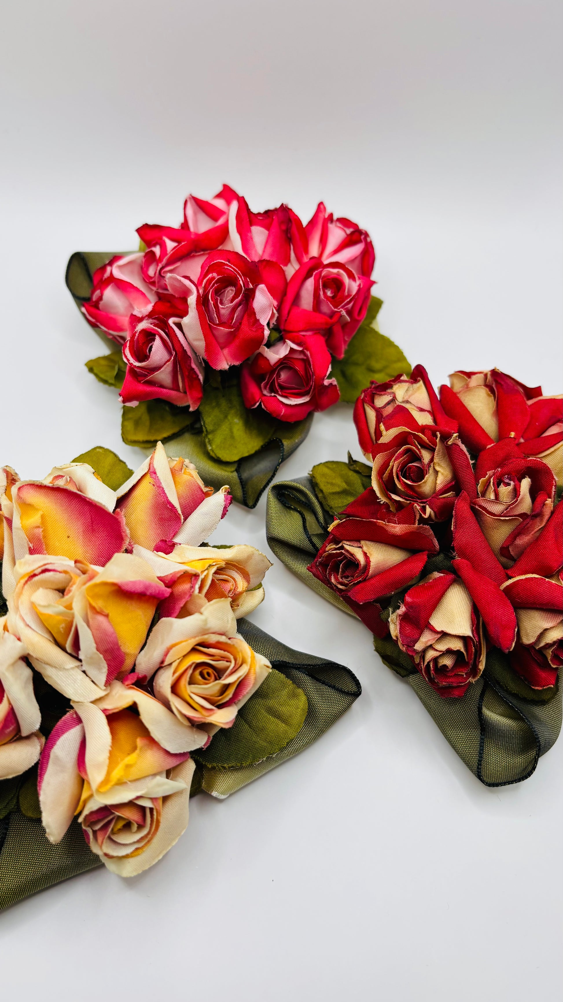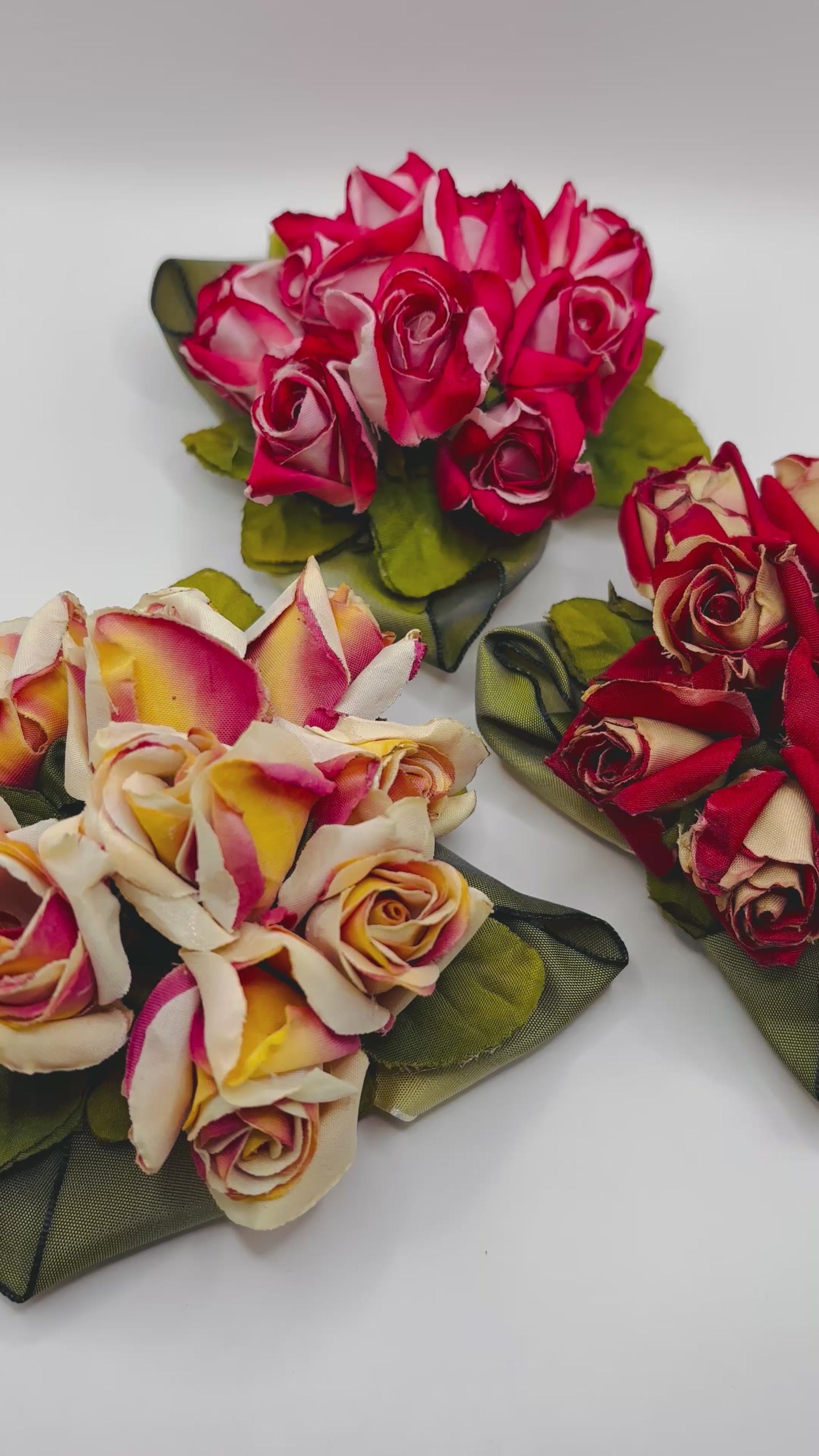 "Mary Ellen" Karin’s Garden 4” Vintage Rosebuds Brooch & Clip. Life Like Rosebuds. Bendable Leaves and can hide them as an option. Pin or Clip to Hair, lapel, dress, hat, handbag and more. Pink and White
