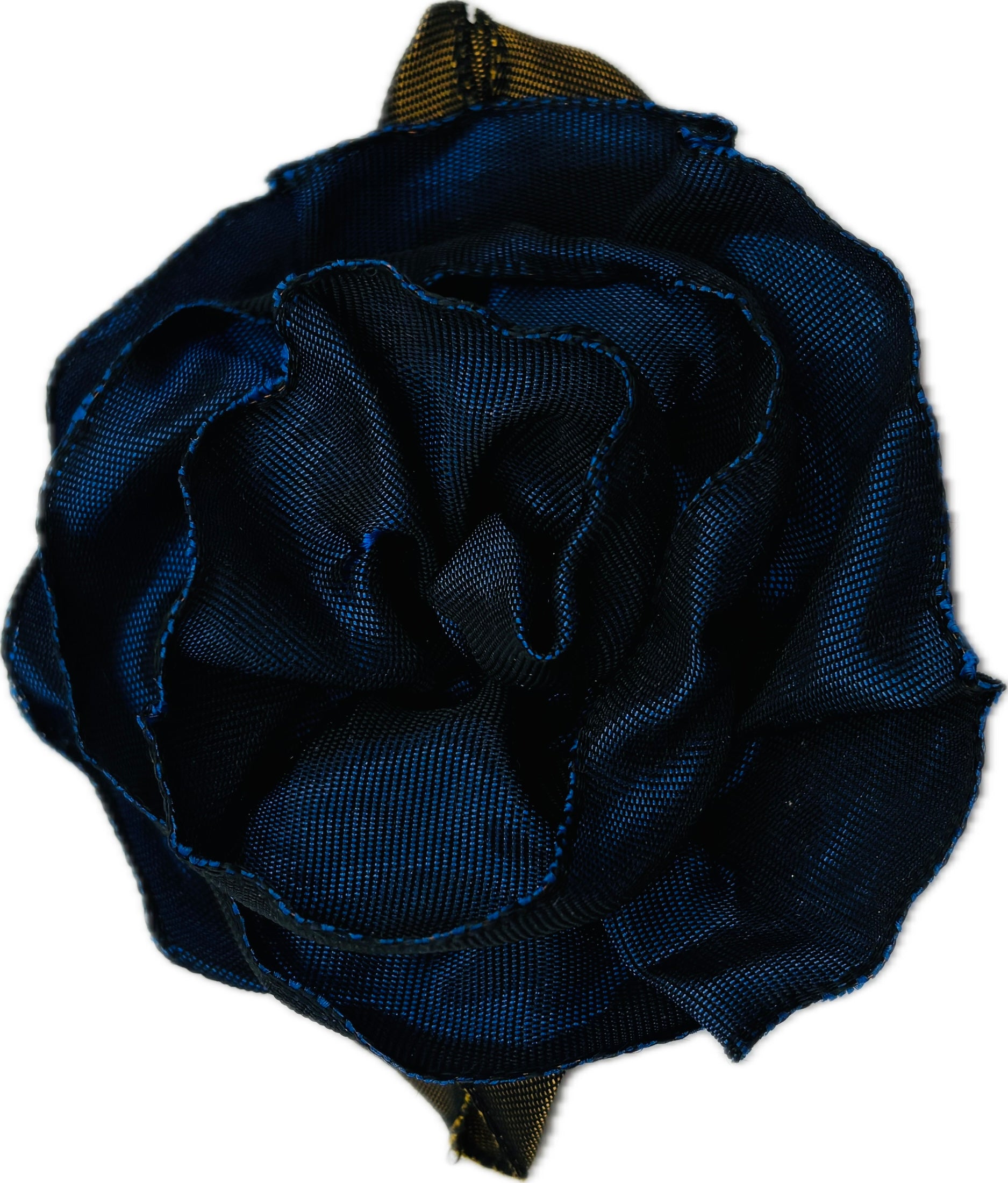 “Rosette” Navy Brooch & Clip. Pin or Clip to dresses, lapels, purse, hat or wear as a boutonniere. Made in the USA. You can reshape the flower and leaves to make it larger or smaller.