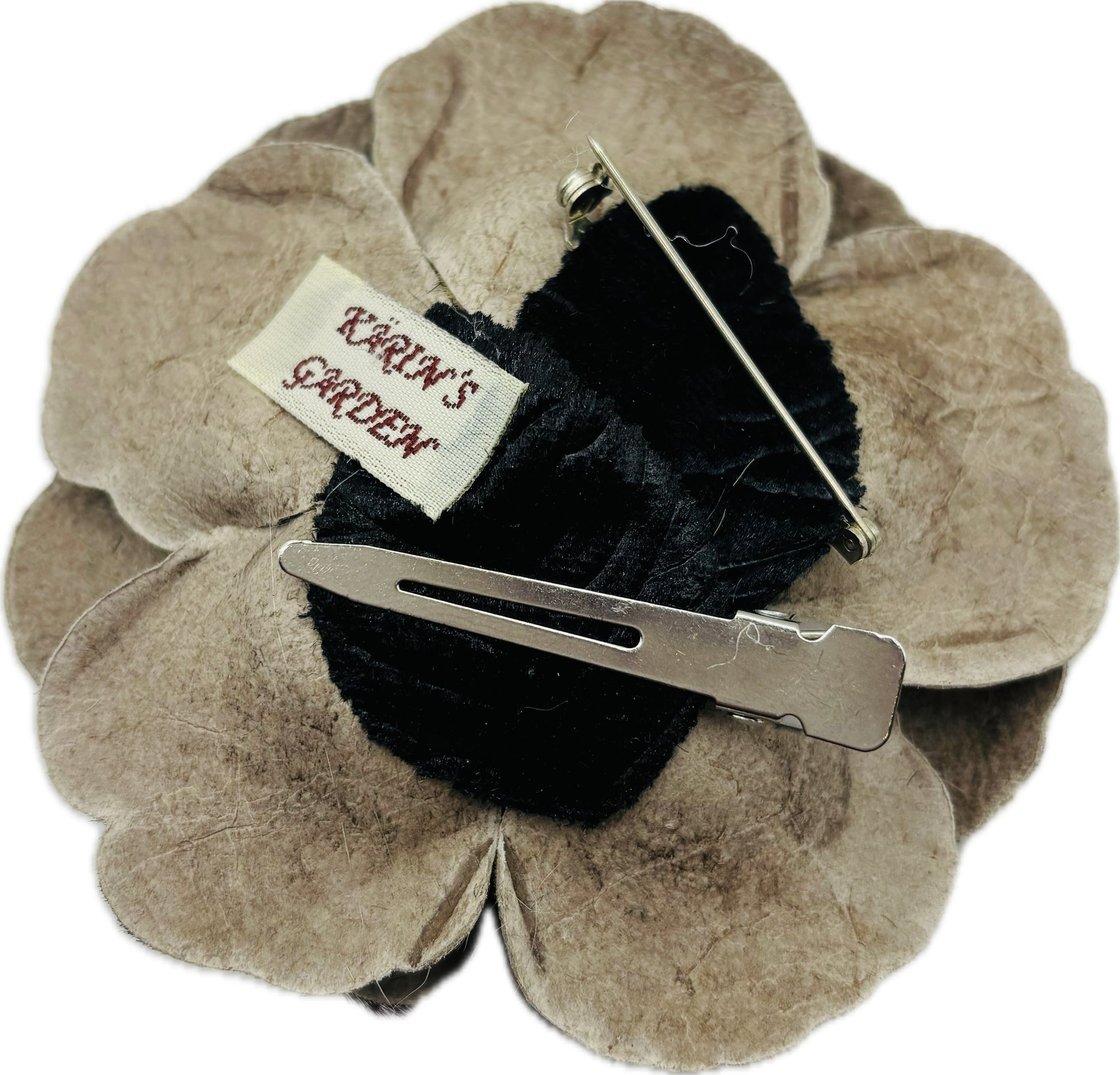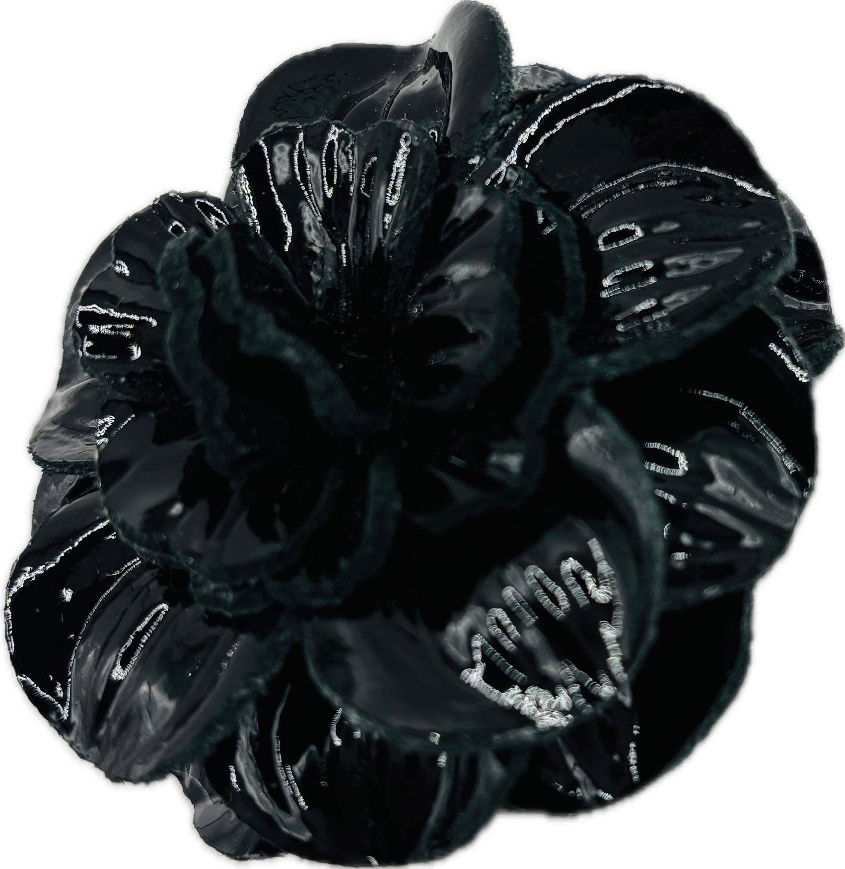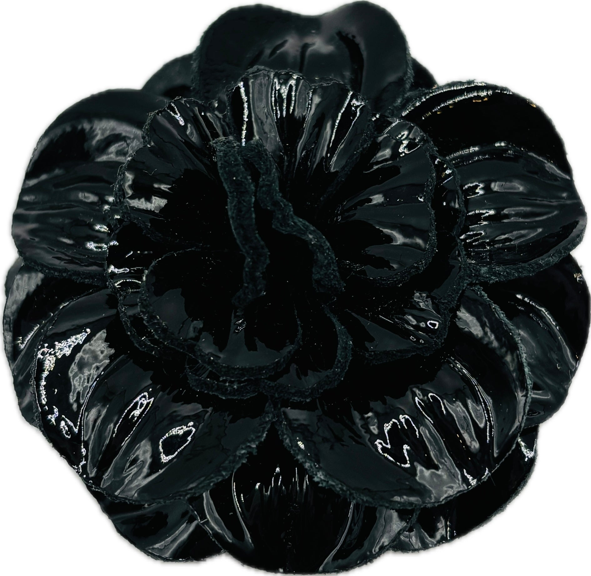 "Roxi" Patent Leather Black Flower Brooch & Clip. 2.25" Clip into hair, onto lapel, necklace, purse, hat & more. Made in the USA with Love.